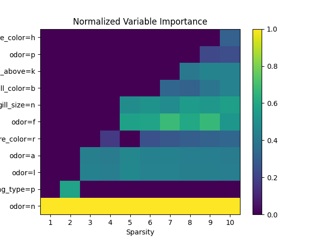 [112 rows x 2 columns]We can also look at the feature importance across all sparsity levels: