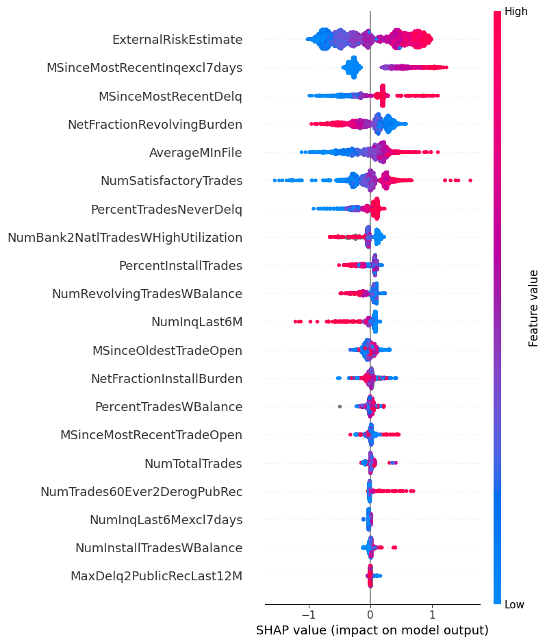 Due to the financial nature of the dataset, FICO posed the challenge of generating high-quality, explainable predictions using this data. When a credit decision is made, the consumer is entitled by regulations to an explanation for any adverse decisions, and thus model interpretability is a must-have for any AI solution to be used in this space.